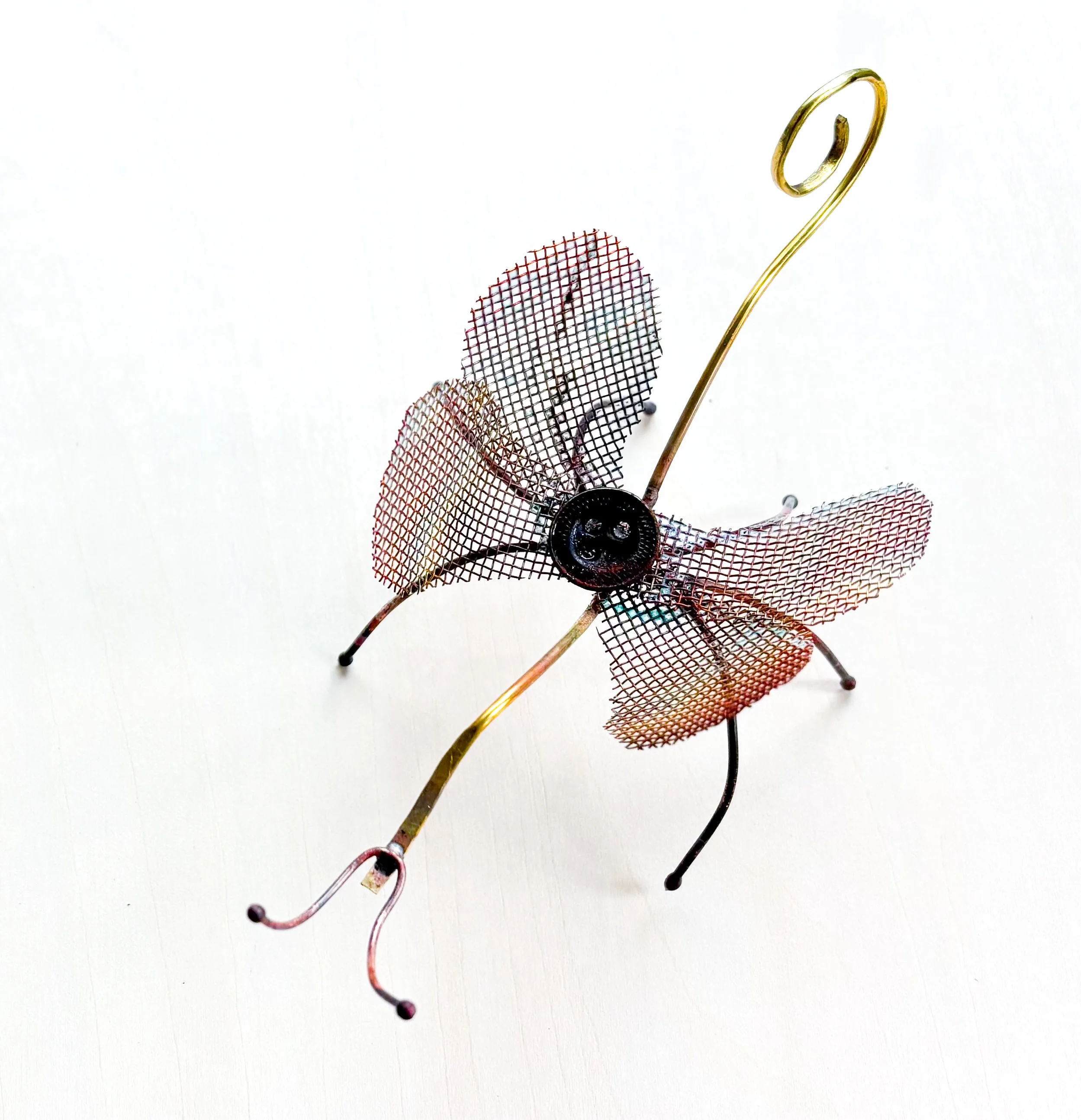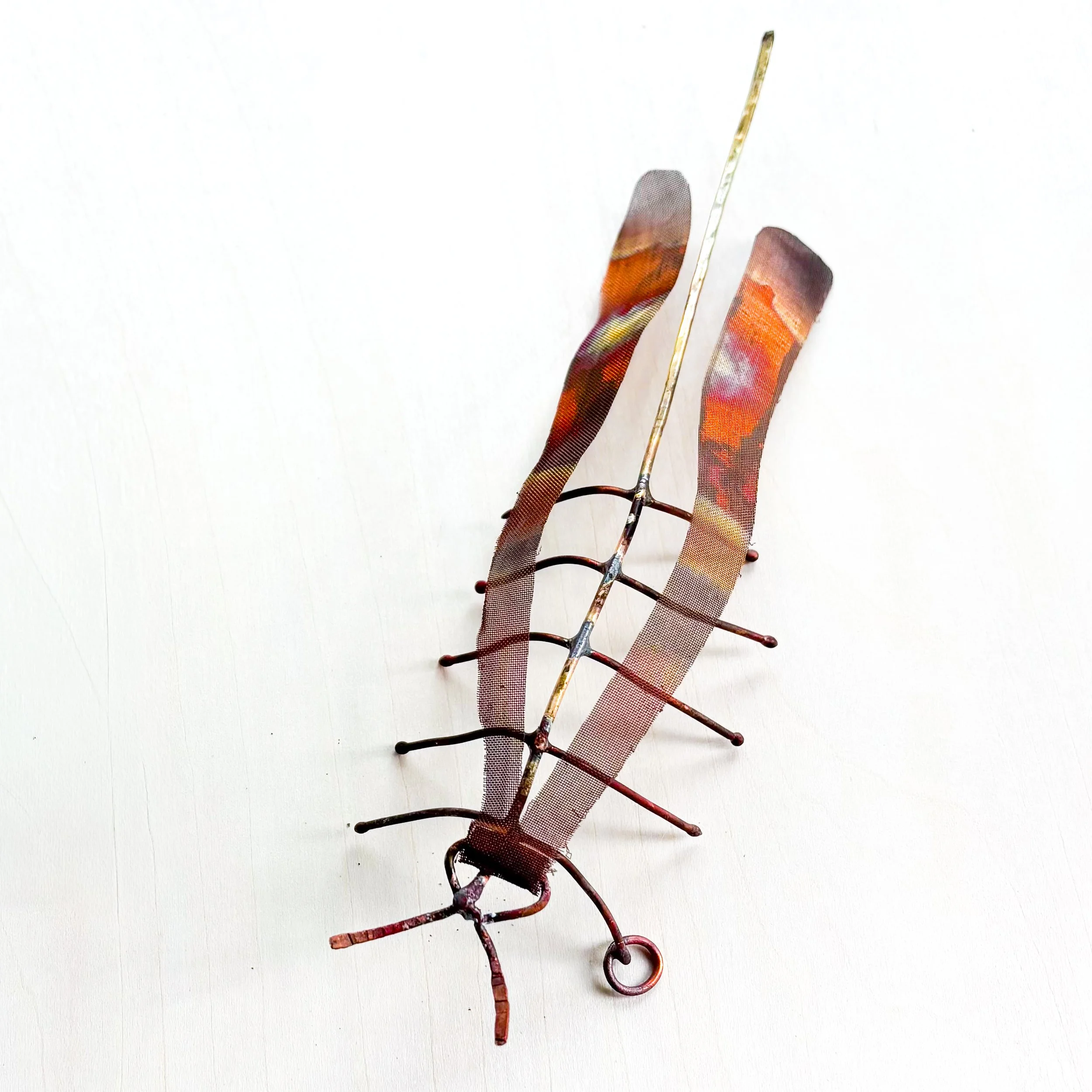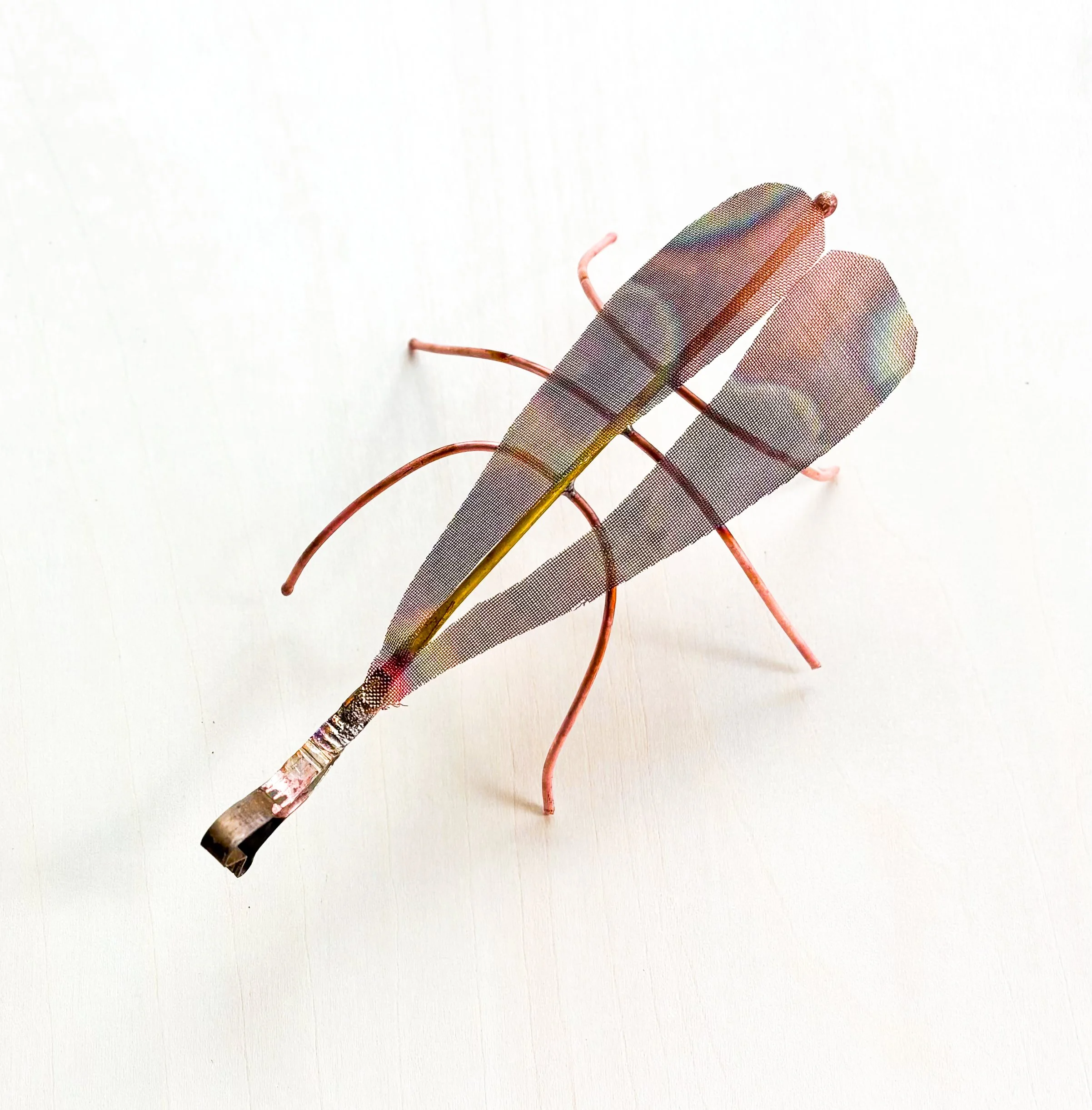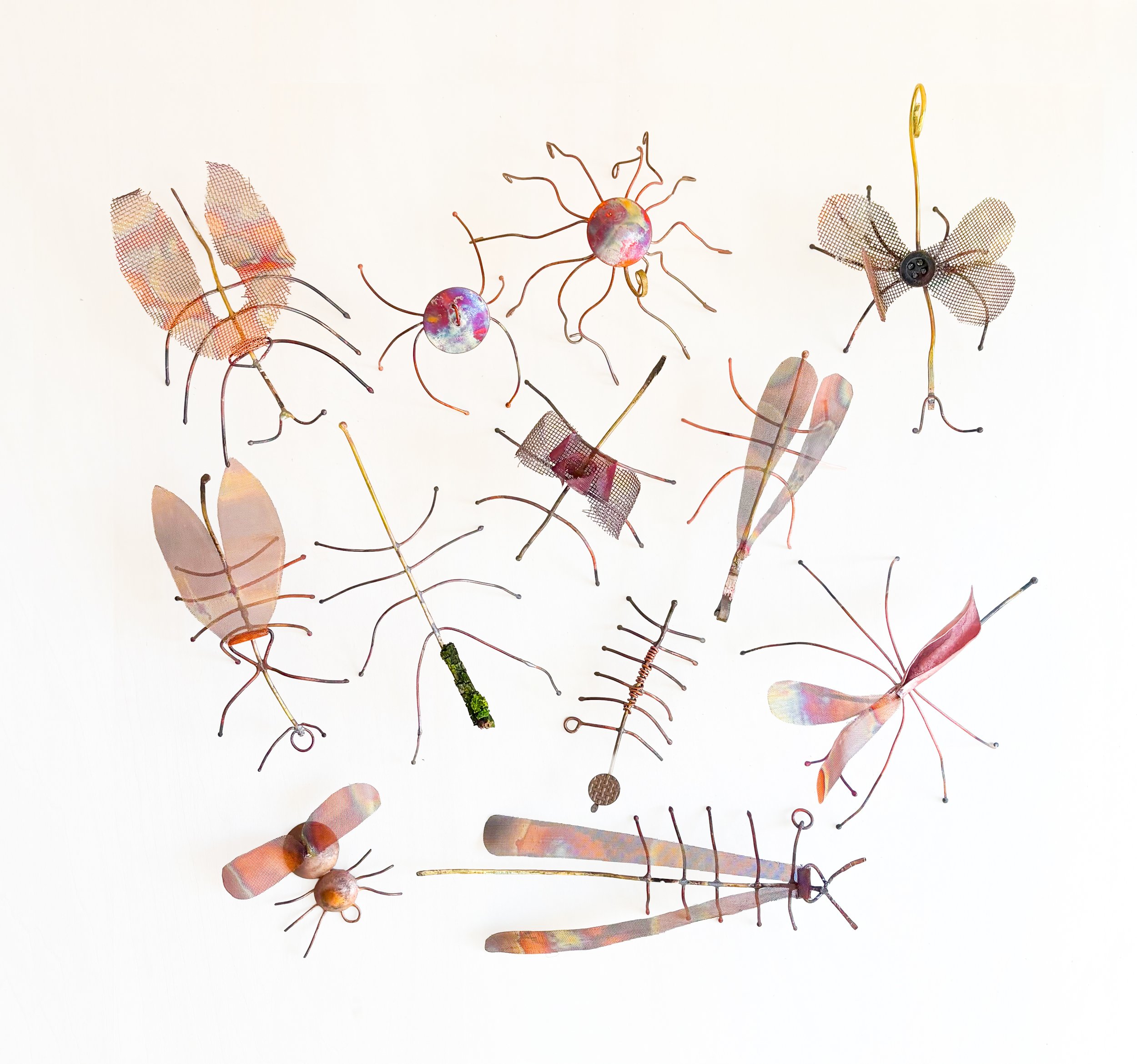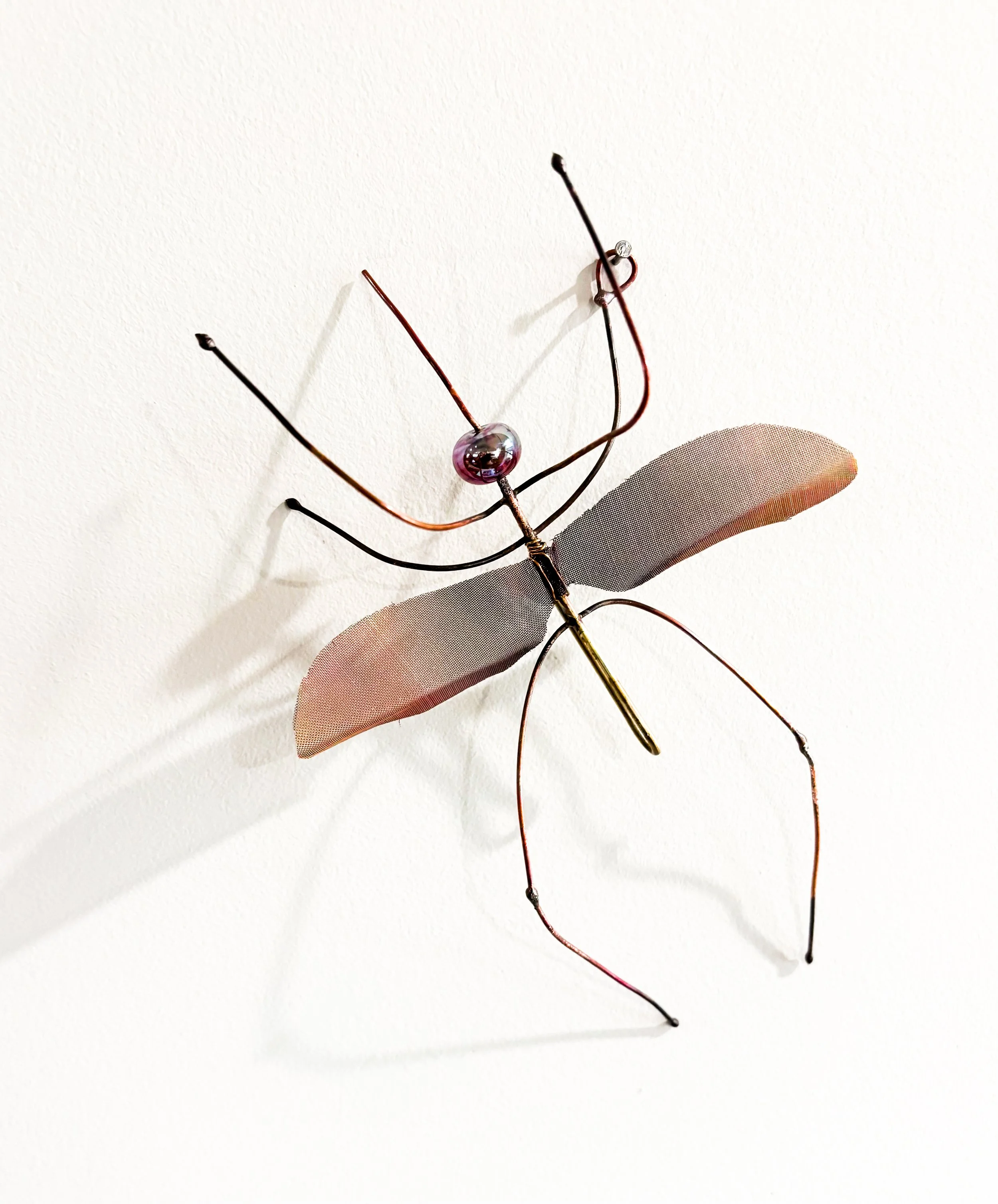 Things that fly, crawl, and tremble—creatures with feathers, arms, legs, strange eyes, carapaces, and tails—capture Jennifer Place’s imagination. They appear in her dreams and follow her into waking life, where she brings them into being using found objects, metal, and glass.