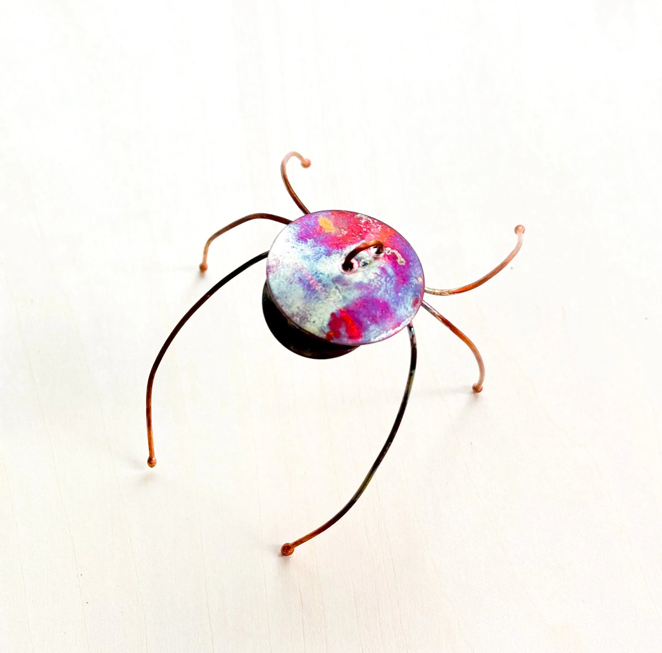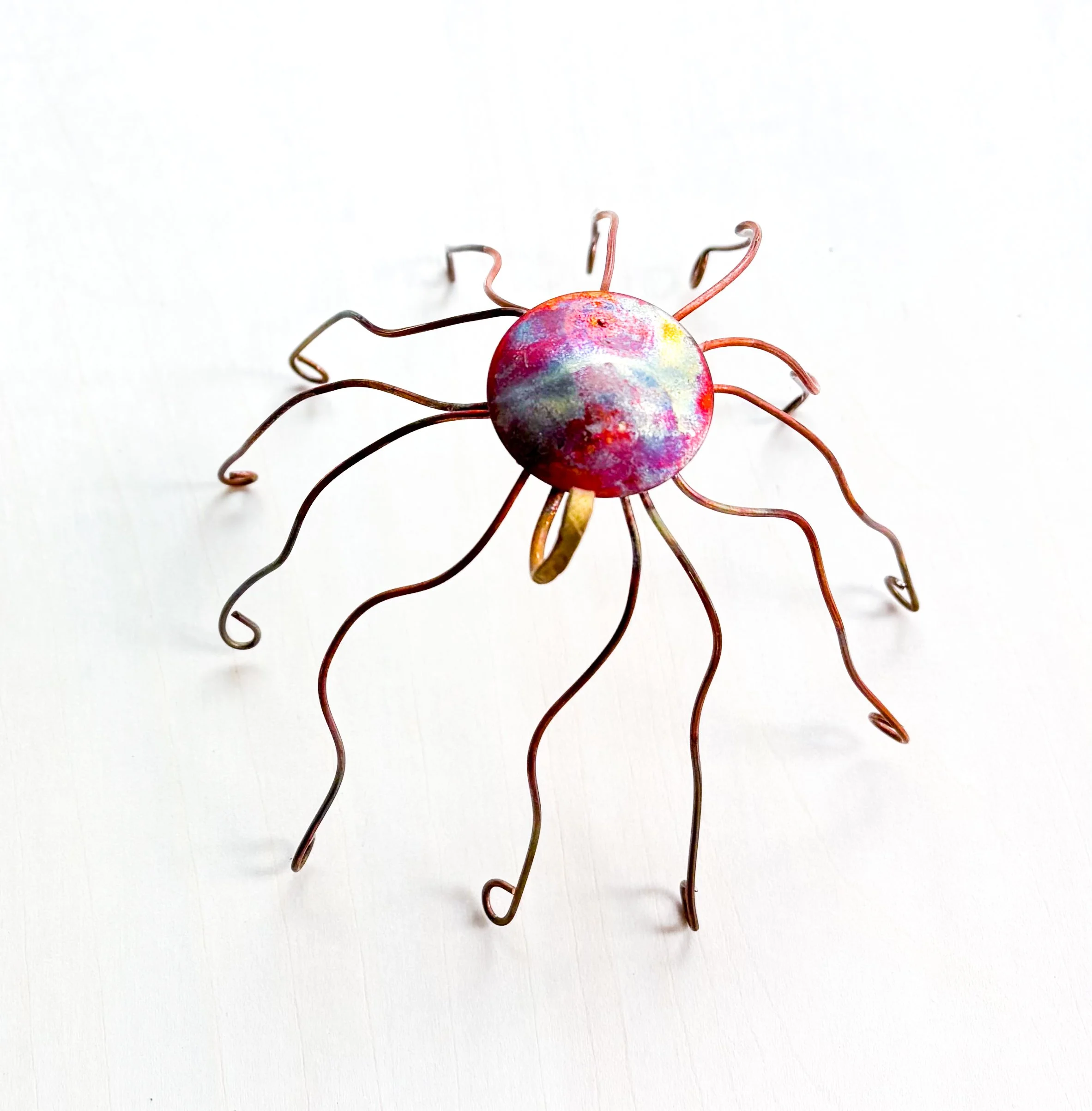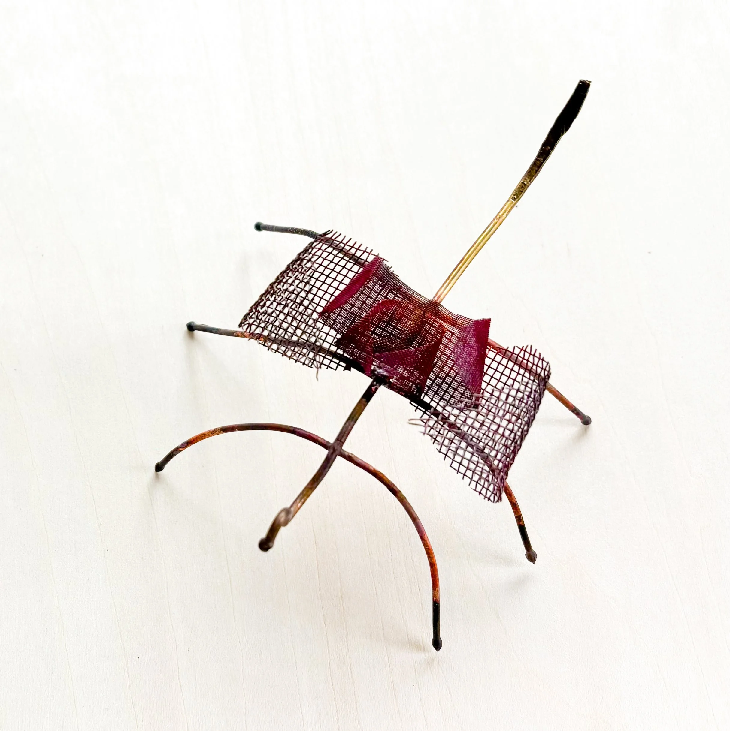 Place has spent her life learning: glassblowing, torch work, and casting; metal soldering and welding, and just as much time gathering and hoarding materials. Ideas come and go, but once an image takes hold, she gives it form.