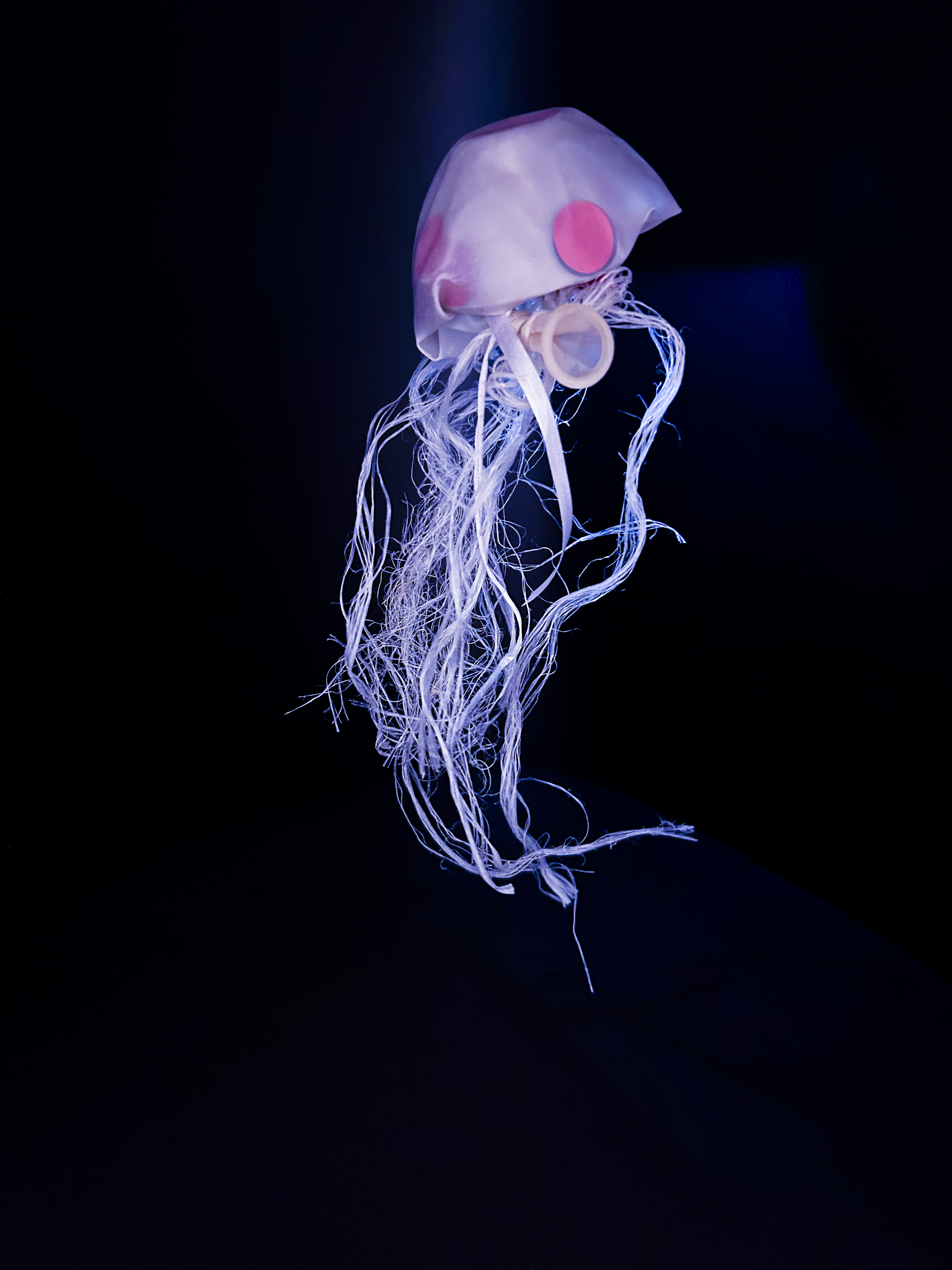 The jellyfish all share the same purpose: to remind us to care for our oceans. So much of what we discard finds its way into the sea. Plastics and balloons drift through the water, mistaken for jellyfish and eaten by marine animals with tragic results.
